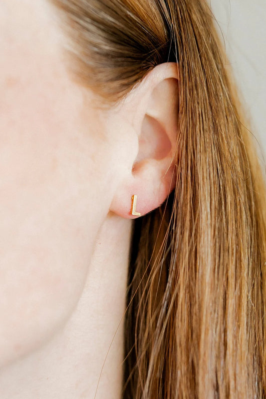 Gold Initial L Screwback Stud Earrings