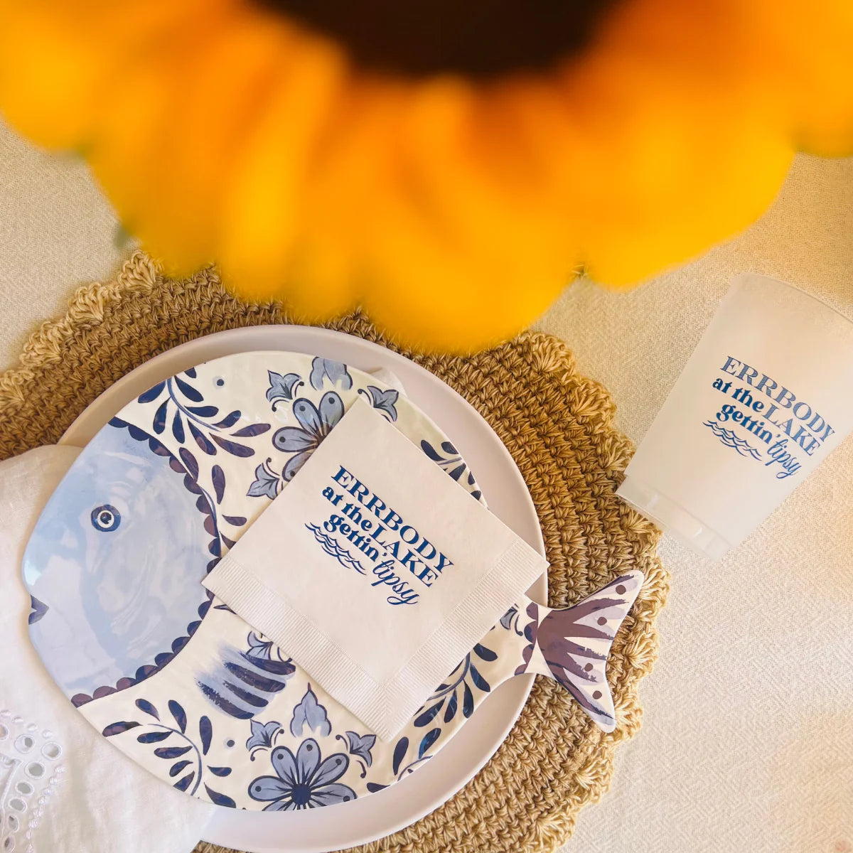 Life at the lake means boat waves, sun rays, and drinks at the dock any time of the day. It's a totally chill vibe, and our "Errbody At The Lake Gettin' Tipsy" cocktail napkins are a celebration of all that Lake Life means. Fun, relaxed, and ready for your lake or boat party, our gorgeous matte foil stamped napkins will make everyone smile while they're gettin' tipsy! Whether you're hosting a sunset soiree or a boat-side bash, these hilarious napkins are the ultimate party essential to keep the good times rolling!