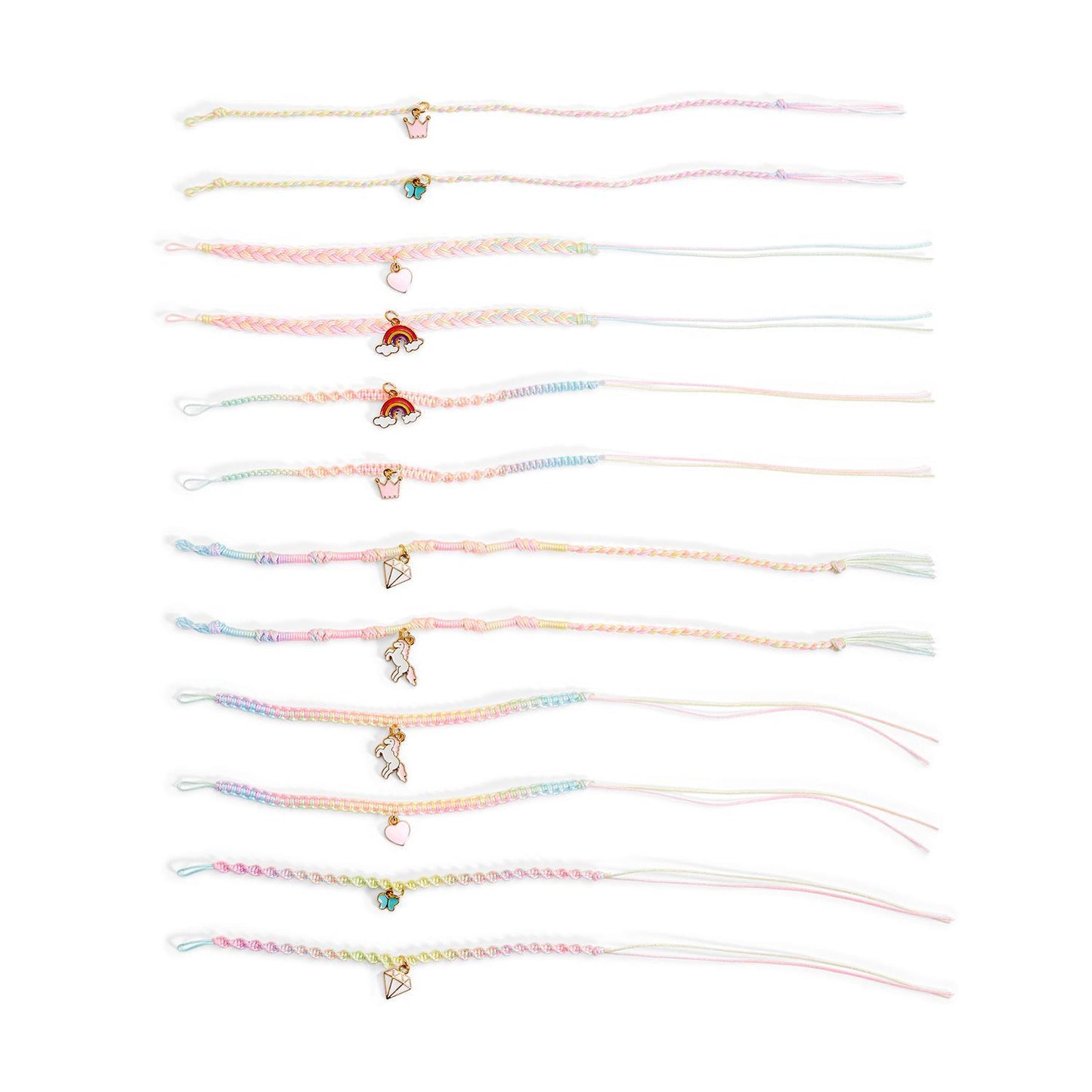 - Assorted 6 different charms: Unicorn, Rainbow, Diamond, Heart, Crown, and Butterfly