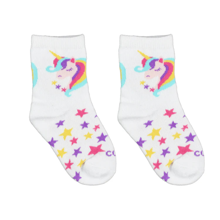 Fun and colorful kids unicorn socks that are sure to add a little smile and pep to any child's day. Available in sizes 4-7 and 7-10.