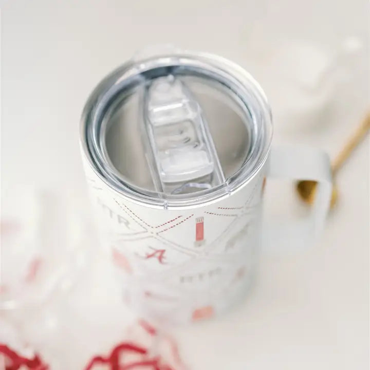 Show your Crimson Tide pride with our officially licensed 16 oz University of Alabama insulated mug. Designed with iconic symbols like the Alabama state outline, the beloved elephant mascot, and the historic Denny Chimes, this mug is perfect for fans who live and breathe "Roll Tide!"