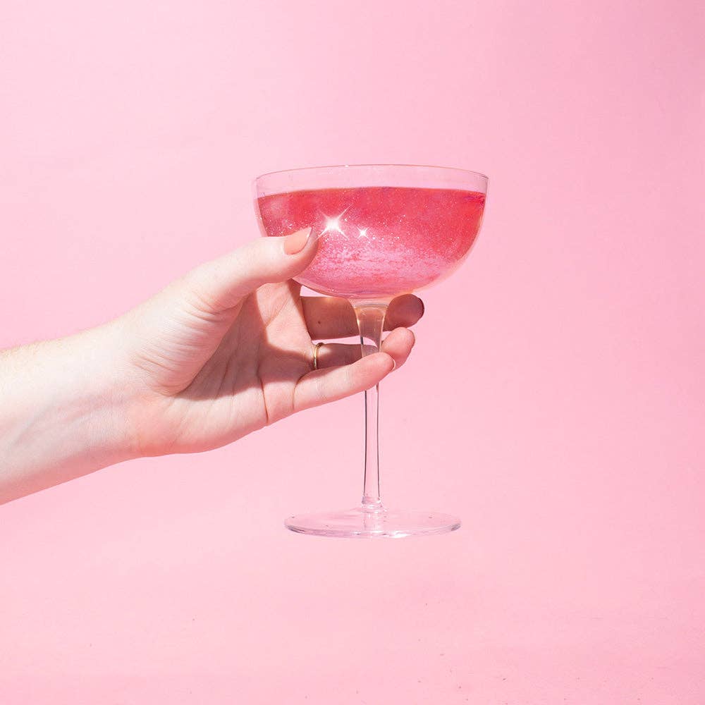 Our glitter bombs are hand-spun puffs of cotton candy with edible glitter inside. Once the cotton candy is dropped into your favorite clear, bubbly beverage, the cotton candy dissolves leaving your drink a magical, sparkly color and a touch sweeter. Be sure to give your drink a good stir to see the full effect of the glitter!
