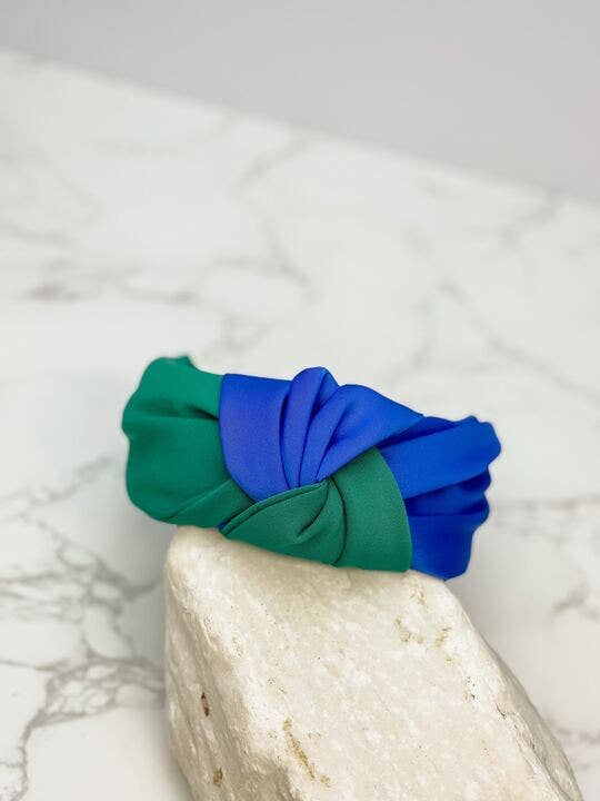 Take your workout or daily look to the next level with our Blue & Green Top Twist Headband! With a bold 2.25" width, this headband features a playful twist design in Kelly Green and Royal Blue. One size fits most for a comfortable and stylish fit. Get ready to stand out (in a good way) with this head-turning accessory!