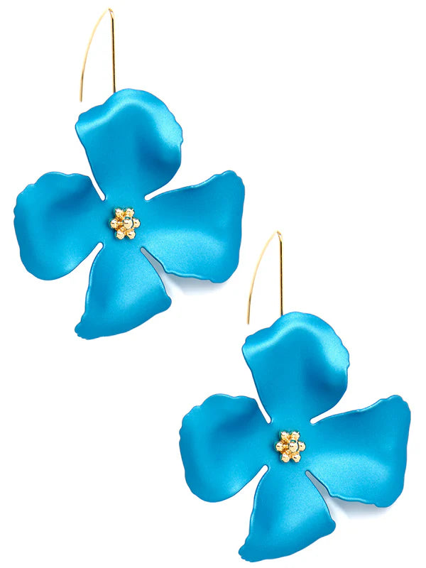 Add a pop of vibrant color to your look with these metallic painted metal flowers. Accented with 18k gold-plating, these earrings are truly a standout piece. This style features a modern pull-through design.