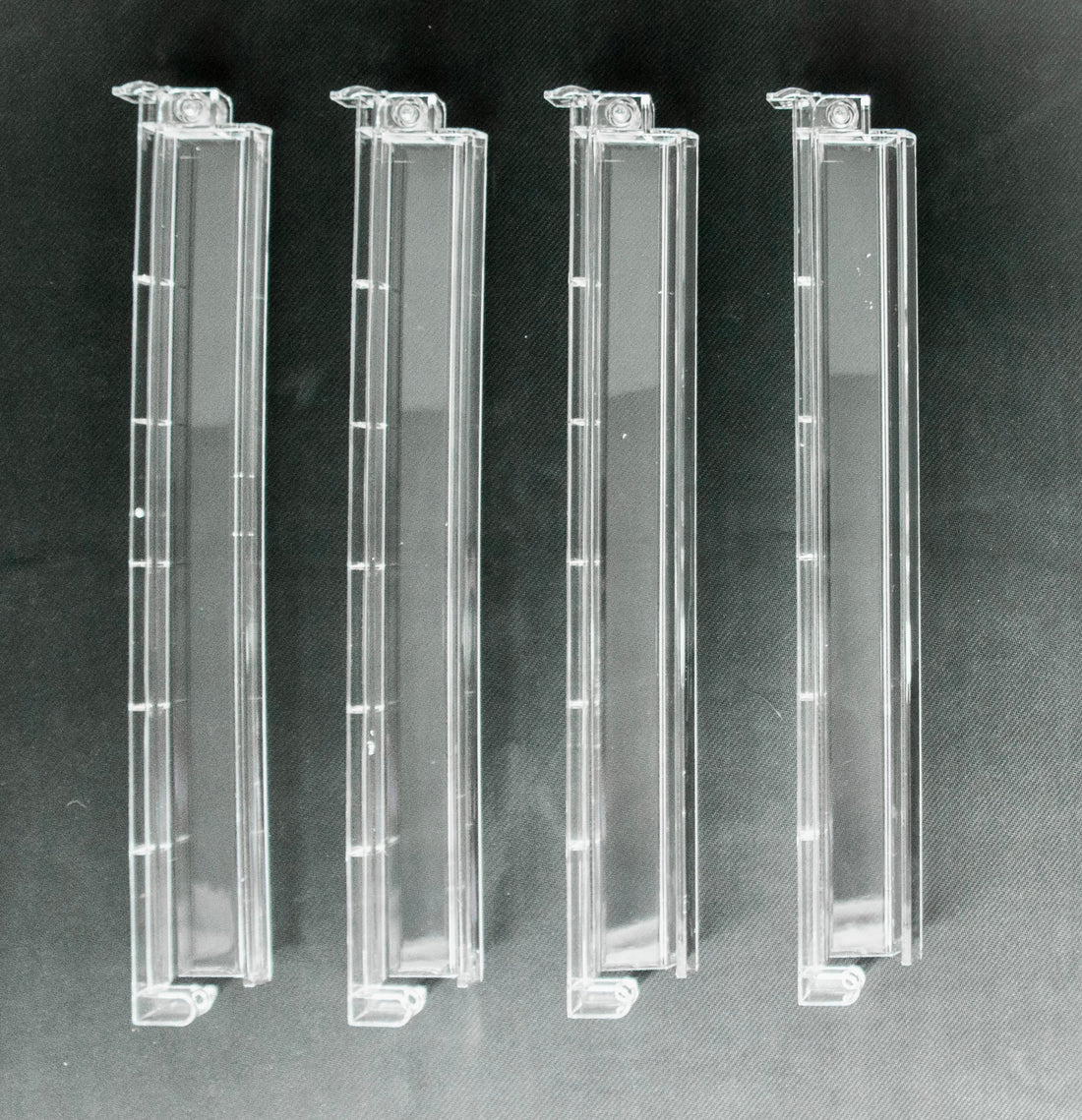 Each set includes four clear acrylic racks with attached pushers, with a stack length of 18.5 inches. Don't forget to complement your set with our Let's Rack and Roll bag, perfect for storing your racks and pushers in style between games.