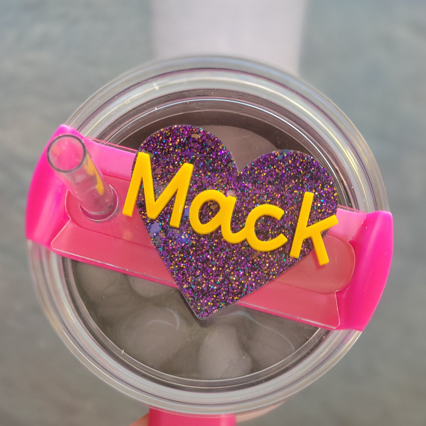 Personalized Heart Stanley Tumbler Lid Toppers. These are hand-wash only and should not go in the dishwasher.