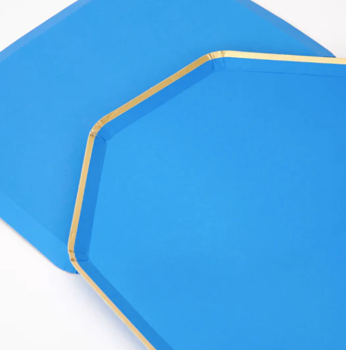 The bright blue of these plates is a truly beautiful color, perfect to add style to any party. Made from high-quality card with a shiny gold foil border and superb gloss finish.