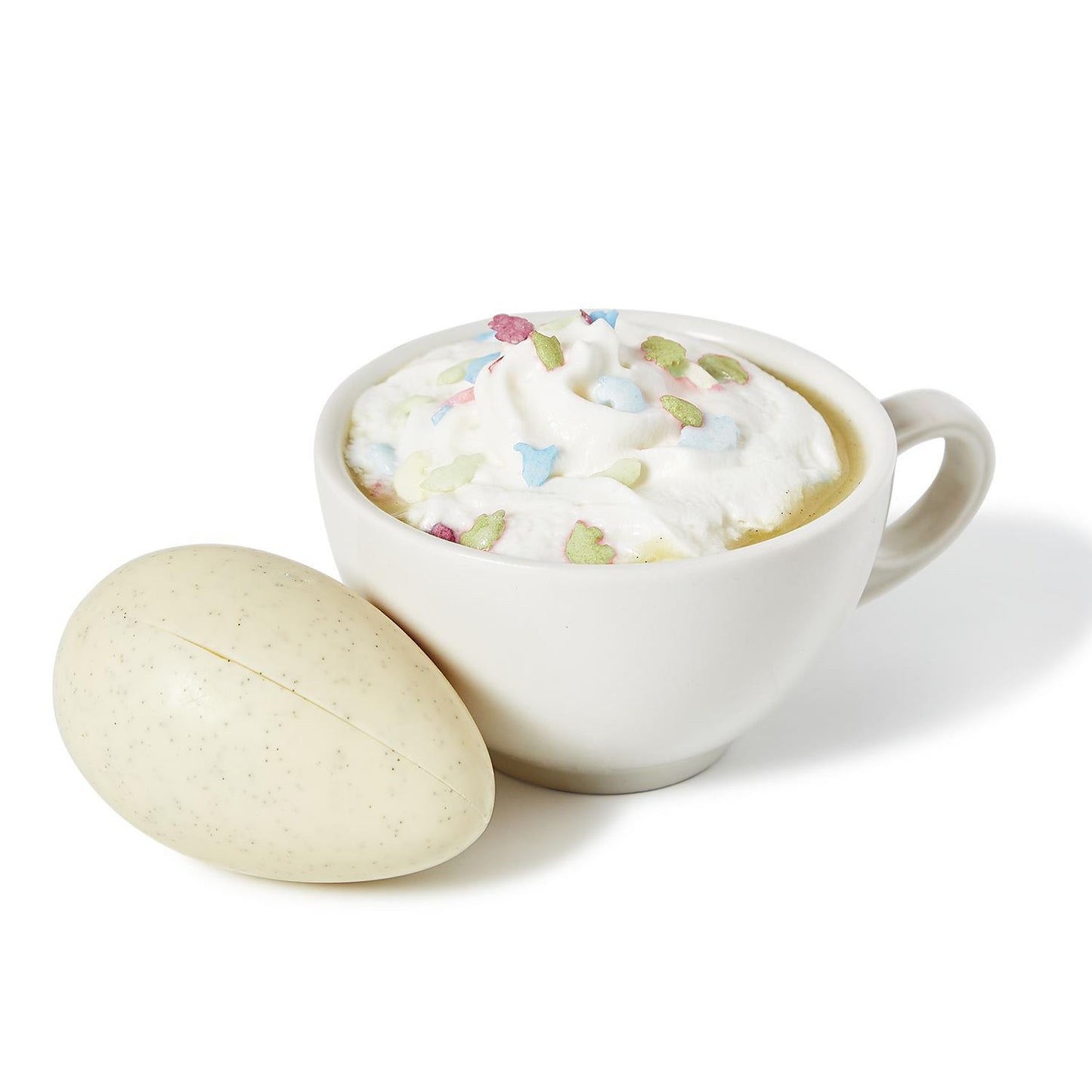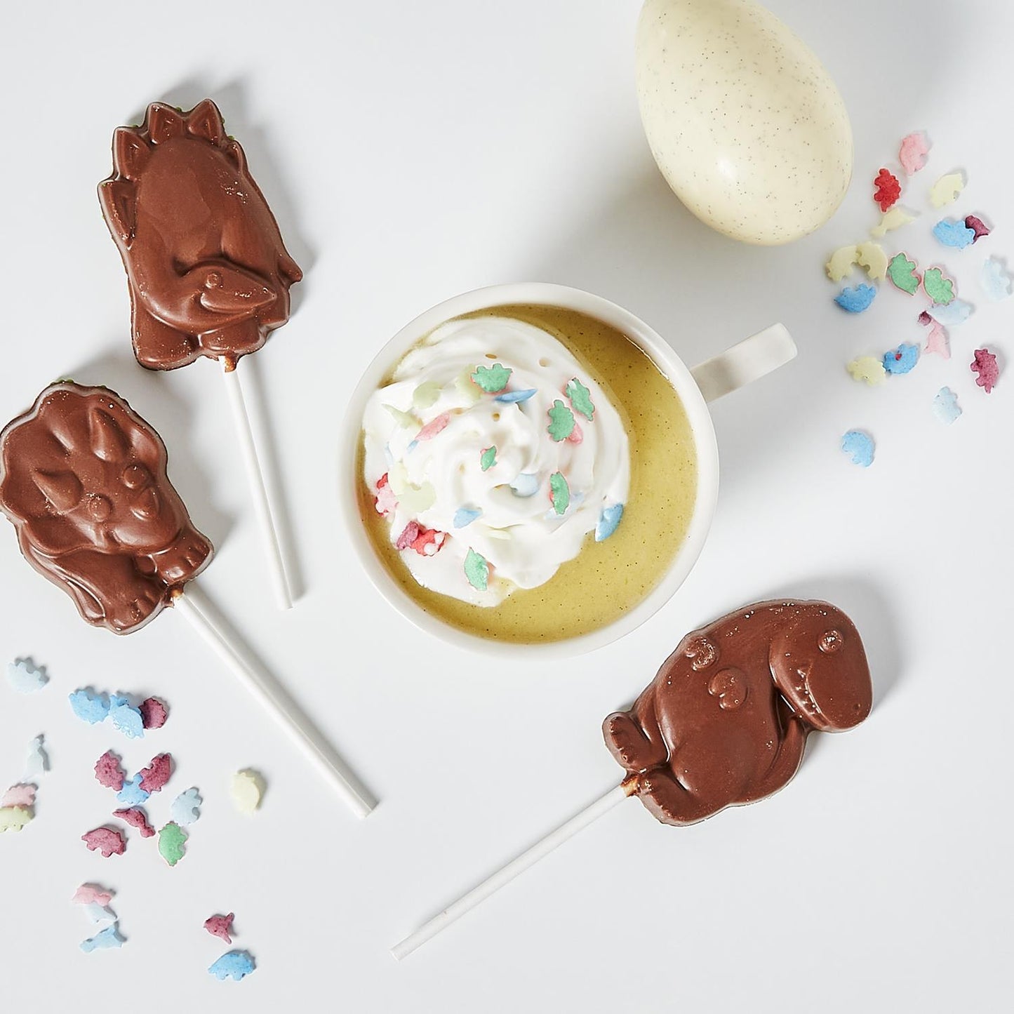 Treat yourself to a dinosaur-sized cocoa experience! Our Dino Egg Hot Cocoa Bomb is speckled with white chocolate and vanilla seed specs for a unique flavor, plus mini marshmallows hidden inside for extra deliciousness. Sprinkle the multicolor dino-shaped sprinkles on top for a prehistoric topping! All you need is a hot mug of milk for a roaringly tasty treat!