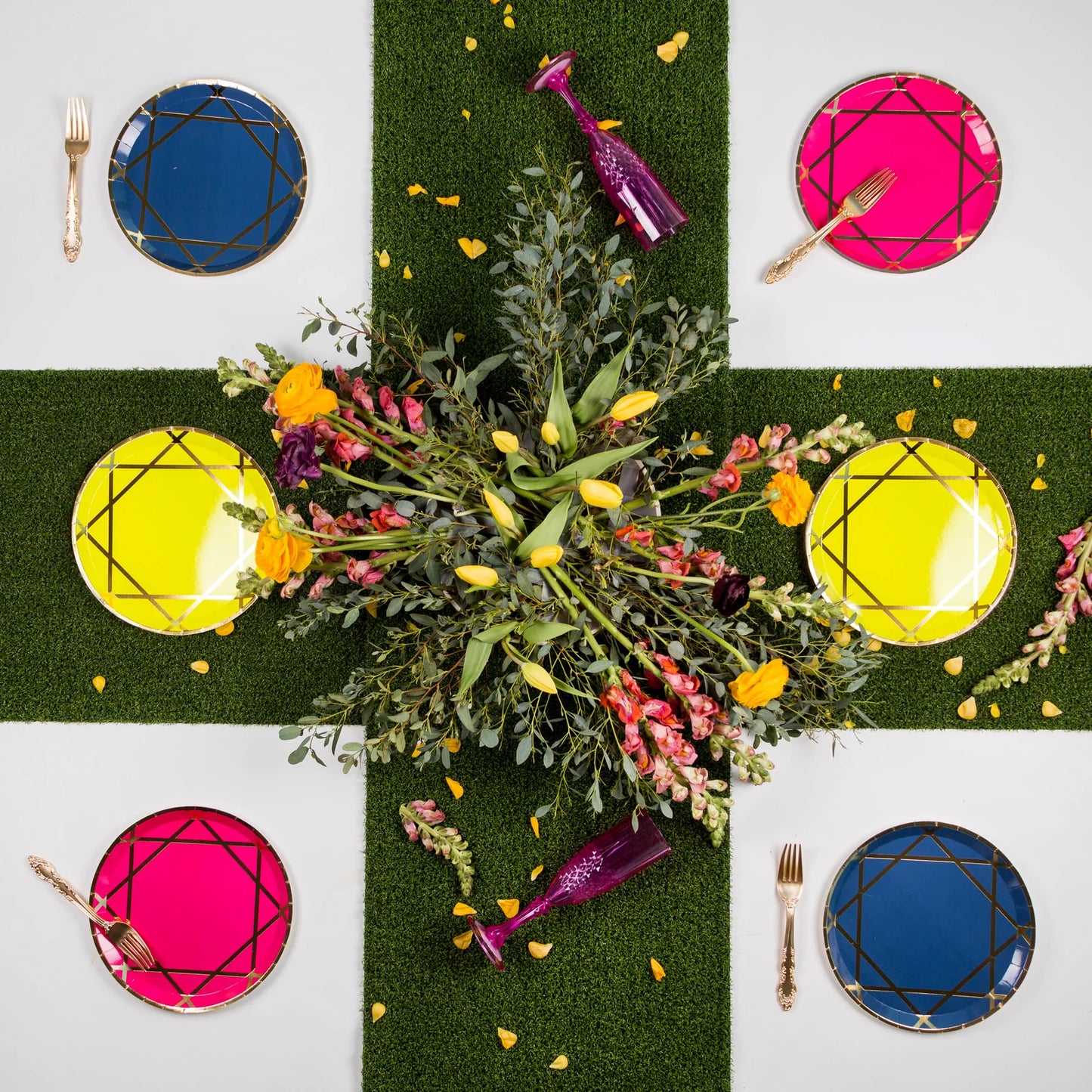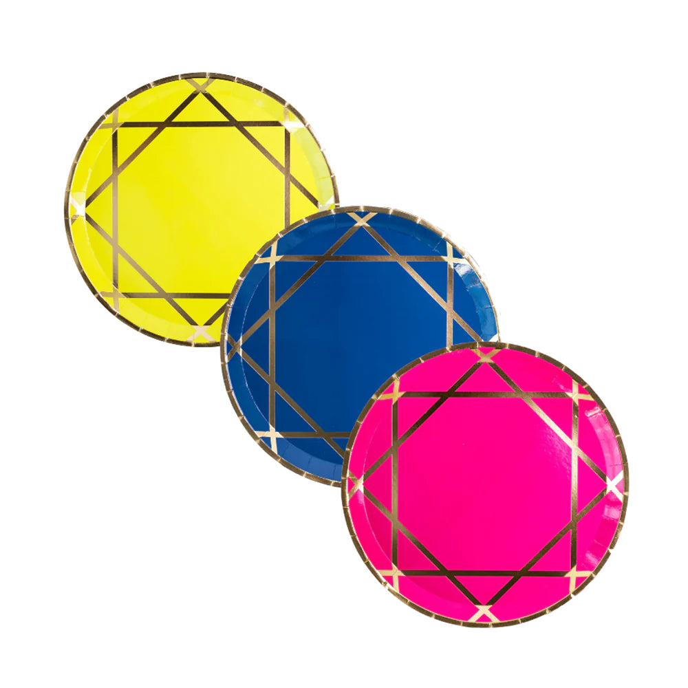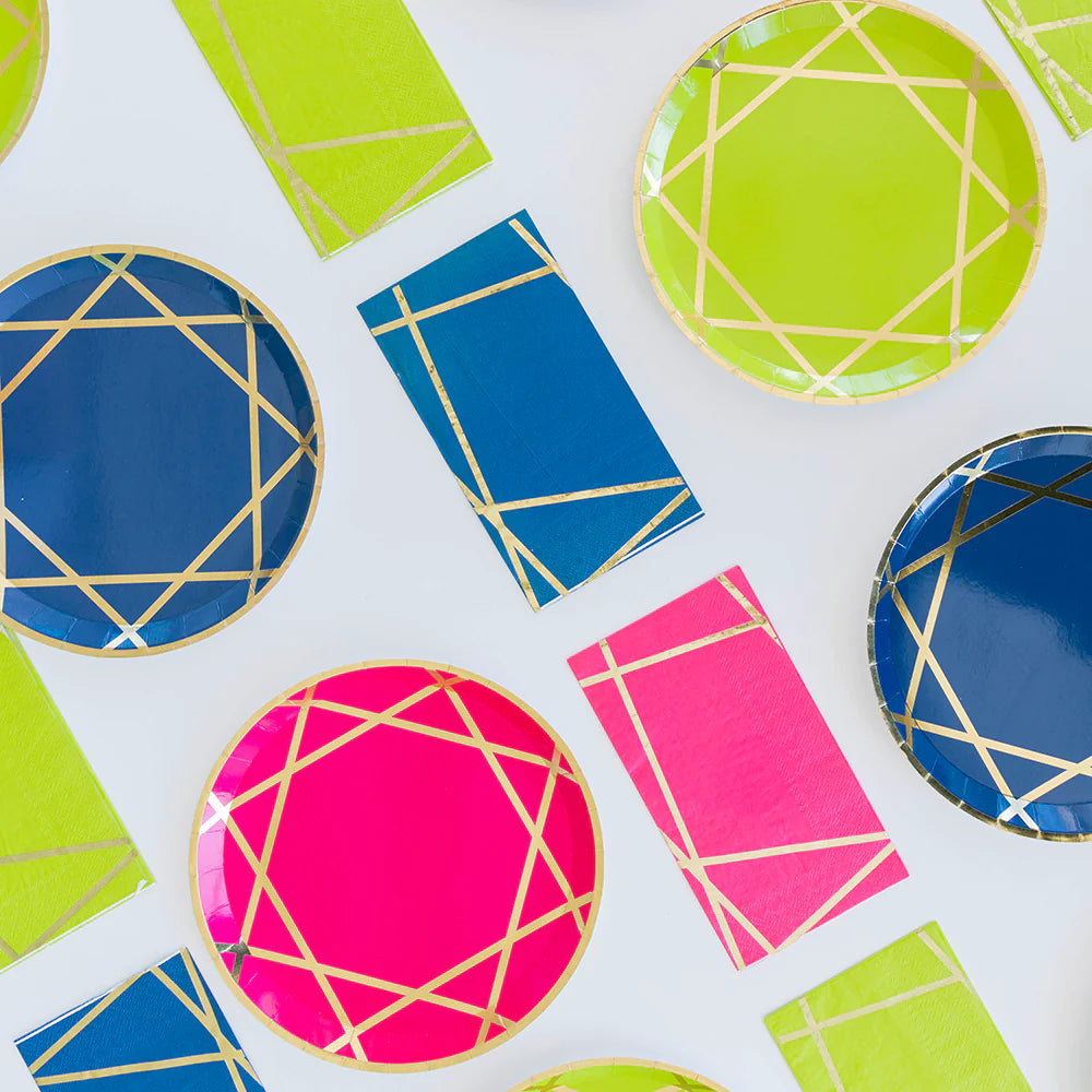 Bright, cheery, and classic, the Jollity & Co Enchanté Collection is perfect for the entertainer seeking a bright and colorful theme. This collection features three bold colors and sharp gold foil lines on both plates and guest napkins.