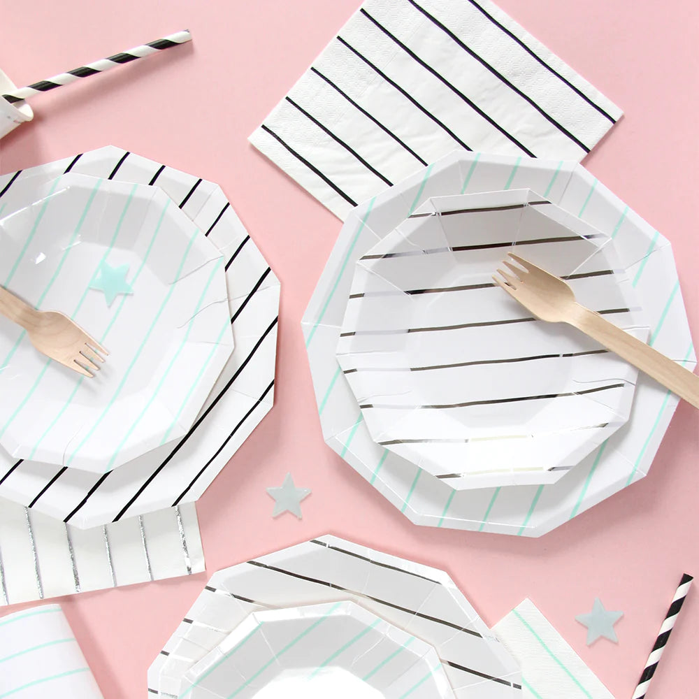 Ooh la la! Inspired by the iconic french breton stripe, these foil-pressed plates are anything but basic. Let them stand alone or mix and match with another pattern to create your own look!
