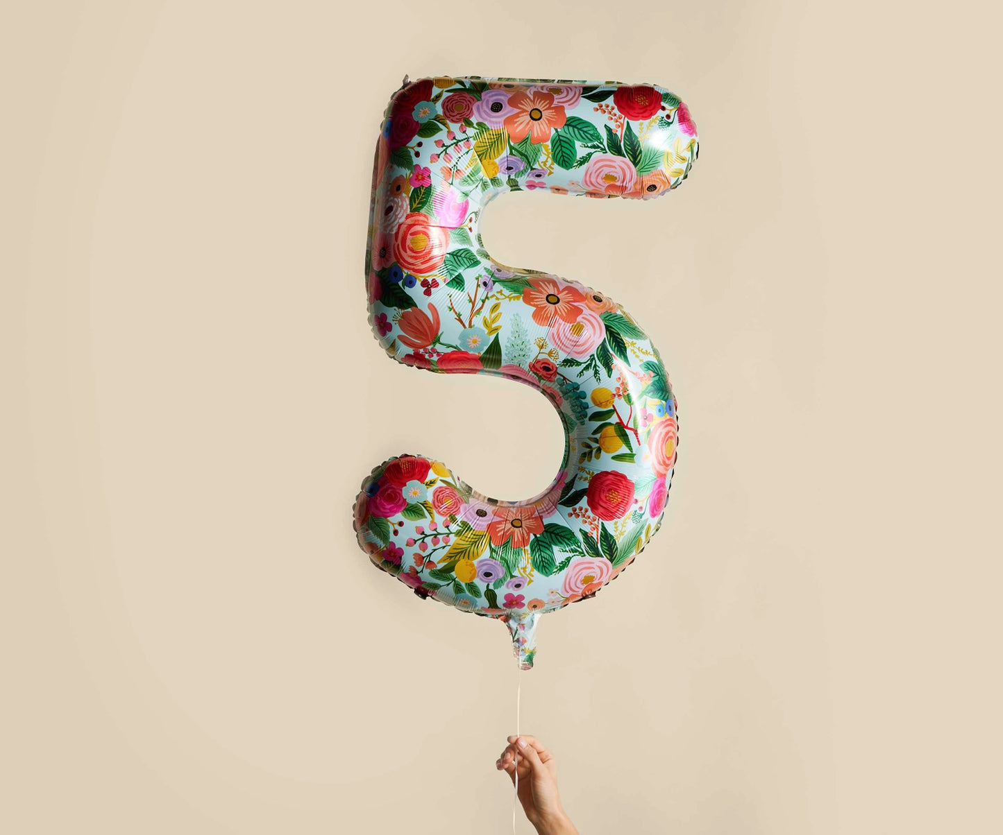 Celebrate a milestone with our Garden Party number foil balloons, available in numbers 0-9. Each balloon is approximately 40 inches tall.