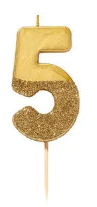 Gold Glitter Number Candles: 5