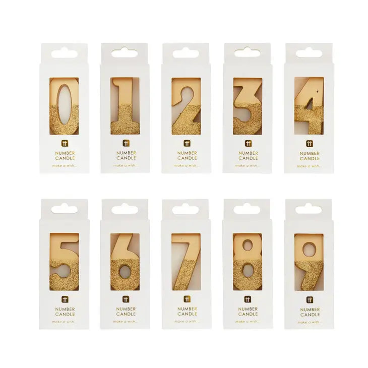 Celebrate special days with our glitter dipped candle numbers. They are perfect for making that magical birthday wish or celebrating an anniversary. Use on their own or mix and match these gold occasion candles with other numbers to get your desired age.