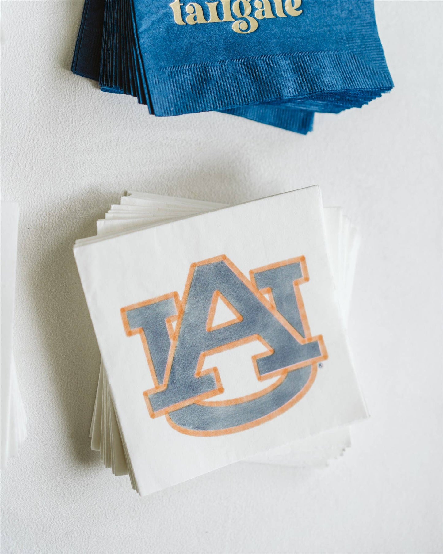 5x5 inch white napkins with Auburn AU symbol in watercolor.