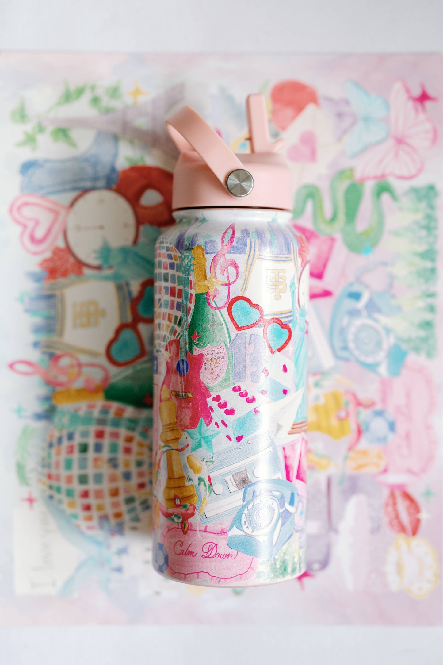 NEW WITH STRAW LID! Taylor Swift-inspired bottle featuring original illustrations!