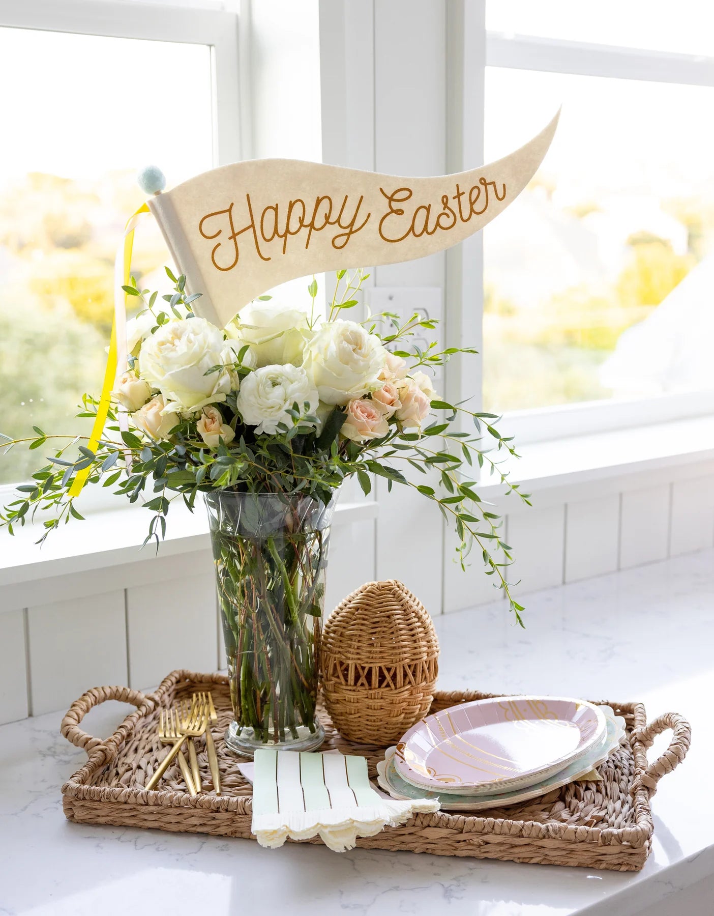 Add some festive fun to your space with this Felt Pennant! Perfect for Easter, this happy pennant will bring joy to any room. Made of high-quality felt, it's a charming addition to your holiday decor.