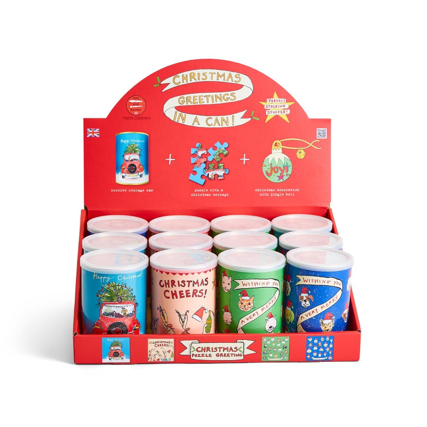 Greet your friends and family this holiday season with a cheerful jingle of our Holiday Greeting Puzzles! Our puzzles come in four festive style options, each featuring a festive storage can, a puzzle with a Christmas message, and a Christmas decoration with a unique jingle bell. This is the perfect stocking stuffer and will be sure to bring smiles all round. So what are you waiting for? Get jingling!