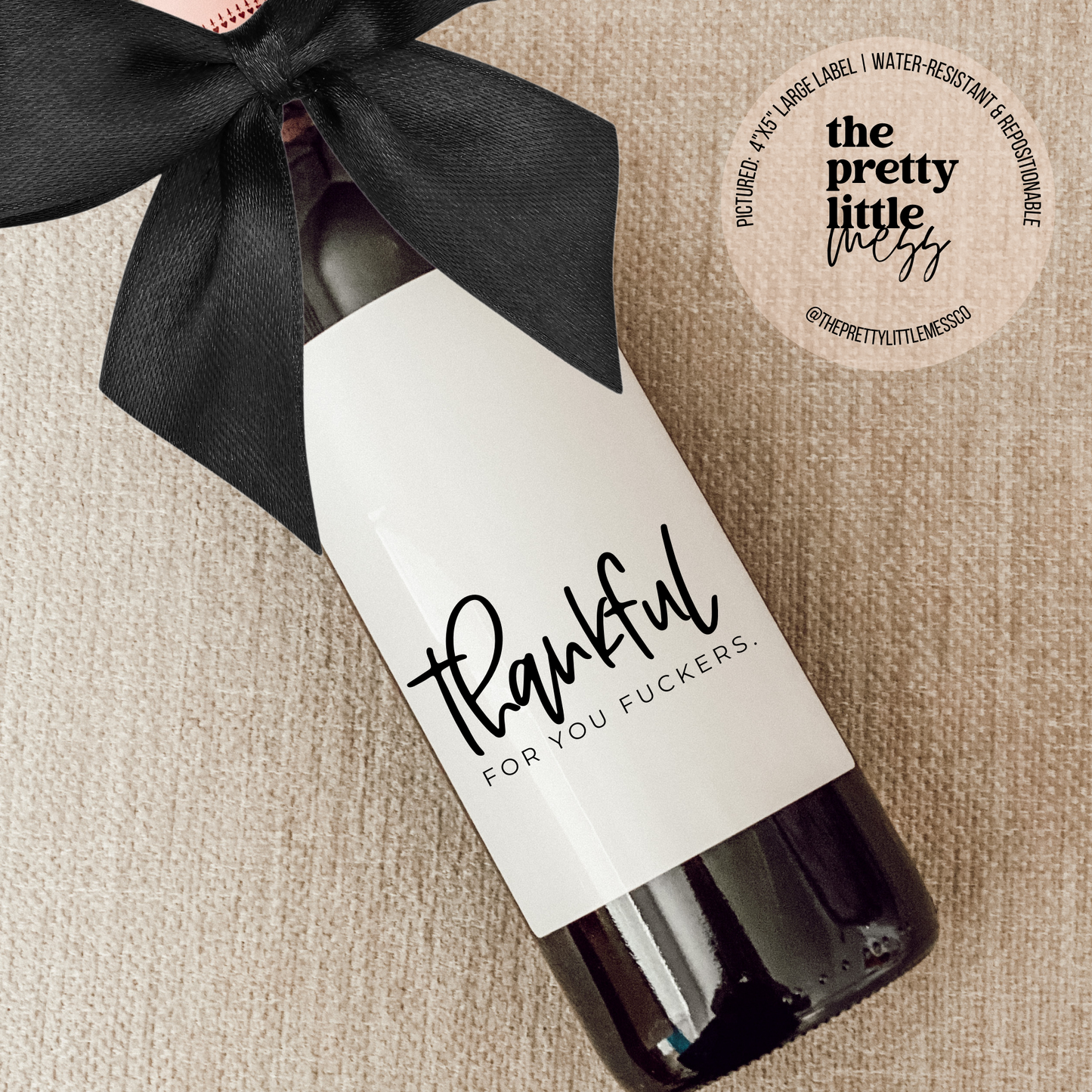 Bottle Labels: "Thankful for You F***ers" (Multiple Sizes)