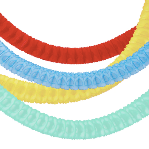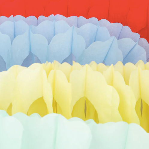 These sensational garlands will give a wonderful decorative effect to a party, or any room in the house. They are beautifully crafted in bright shades of red, yellow, blue and mint tissue paper, for a really fun look.