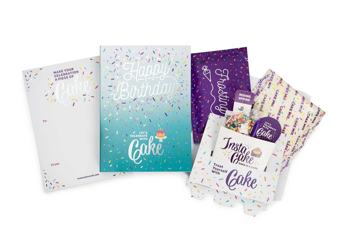 Containing: Cake Mix, Frosting, Pop Up Baking Case, Water Measure, Mixing Spoon, Sprinkles, Candle, Cake Topper & of course an envelope (fits through the mail slot!)
