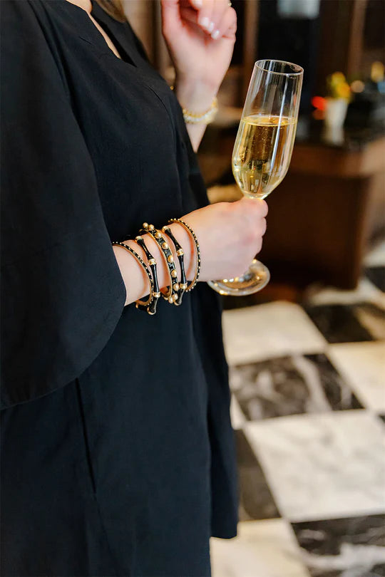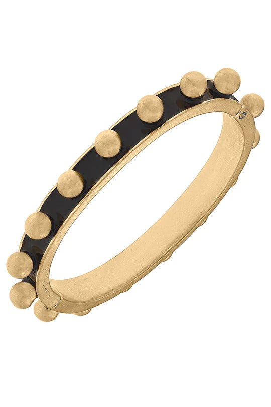 Jenna Chunky Enamel Studded Metal Hinge Bangle: Black