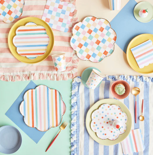 On-trend spots, stripes and checked prints will make any celebration special. The colors in these premium napkins are designed in a graduated brushstroke effect for an eye-catching look.