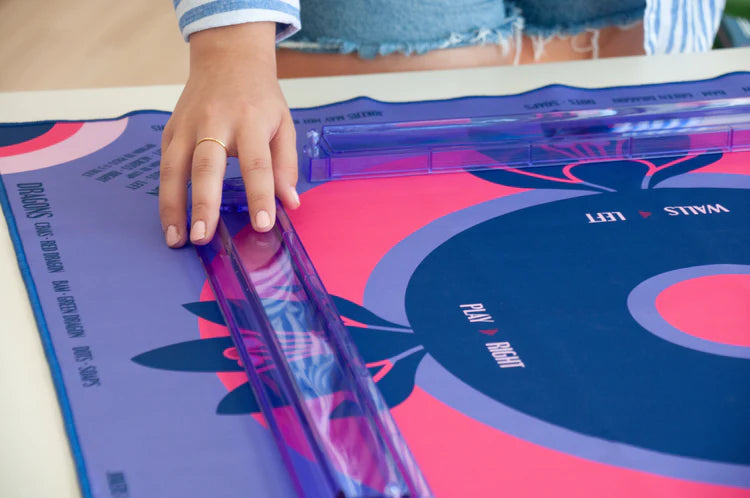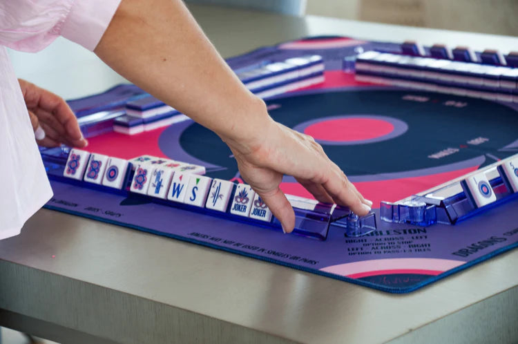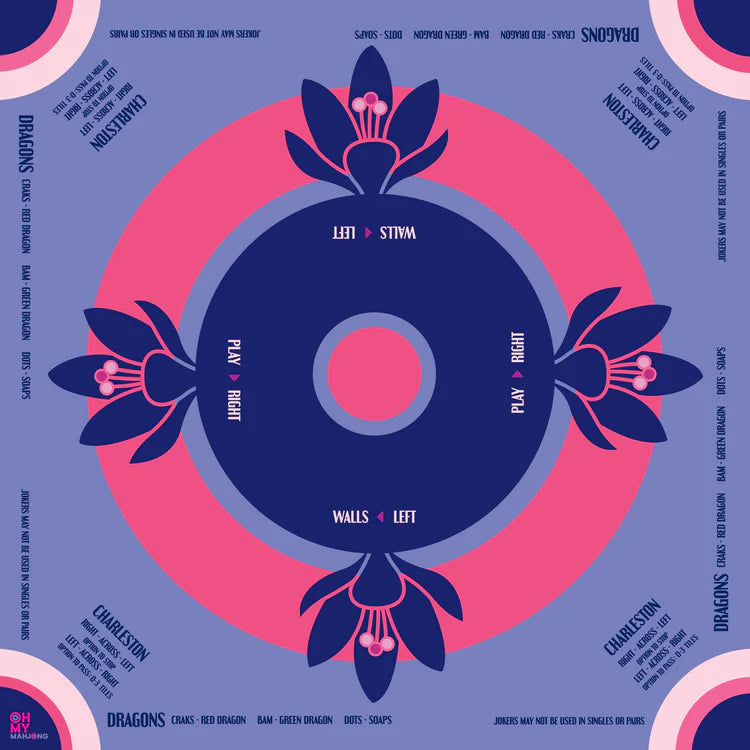Get ready to add a touch of cheeky charm to your game nights with the fabulous Lilac Preppy Soiree Mat! Picture this: an extravagant gathering infused with vibrant purples, hot pink, and navy. Featuring a non-slip surface, it ensures your tiles stay put as you play like a seasoned pro. Plus, it includes essential rules for American Mahjong, covering everything from directions of The Charleston, suit and dragon pairings, gameplay and wall direction and the pesky no jokers in a pair rule.