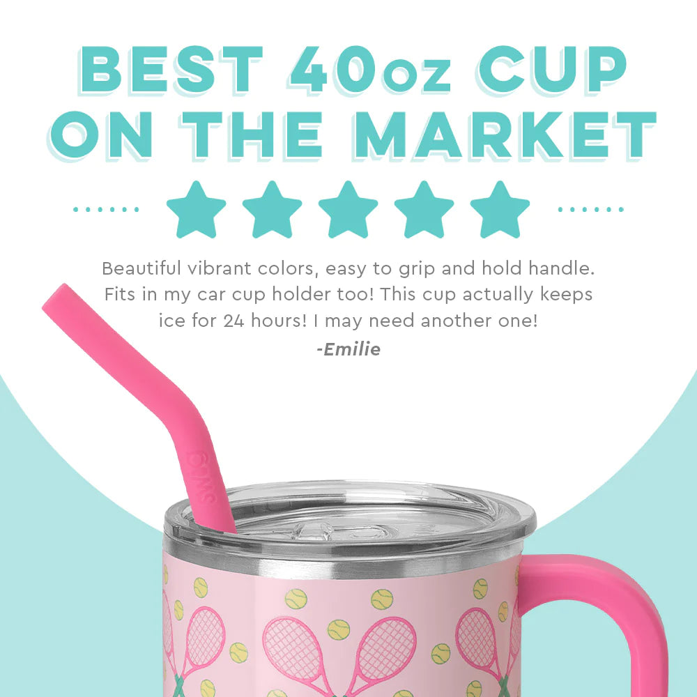 Hydrating has never been easier with our 40oz Mega Mug! The cup holder friendly frame, comfort-grip handle and flexi-tip straw with a standard plastic straw base come together to create your new favorite Swig!