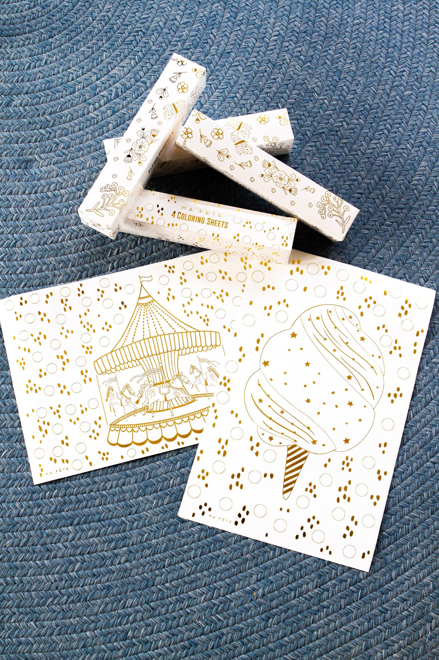 Keep your guests entertained with these beautifully designed coloring sheets to make the perfect pastime, offered in two designs and outlined with gold foil for that added WOW factor. Product details: - Pack of 4 - 2 designs, gold foil details - Size: 10" x 16" - Rolled in a box - Package Size: 10"x2"x2"