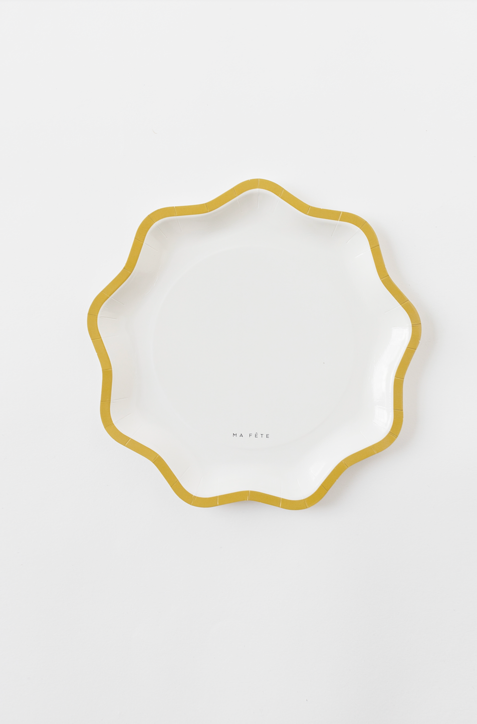 Our signature range of disposable party plates come in a choice of colored edges – blue, mint, yellow, or pink. Mix and match for a kaleidoscopic effect! Add Signature desert plates to make fun combinations!