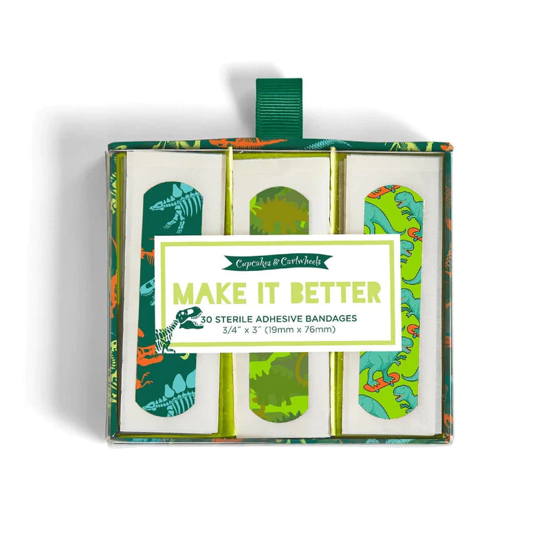 These dinosaur-themed bandages are the most stylish and fun way to protect cuts and scrapes. Assorted in 3 popular colorings/patterns these are great for both, adults, and children.