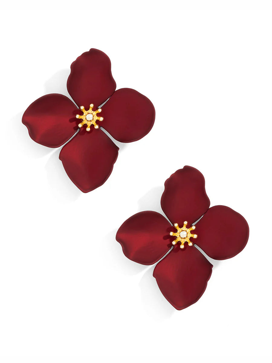 Hand-painted oversized metallic flower earrings with 18k gold-plated accents.
