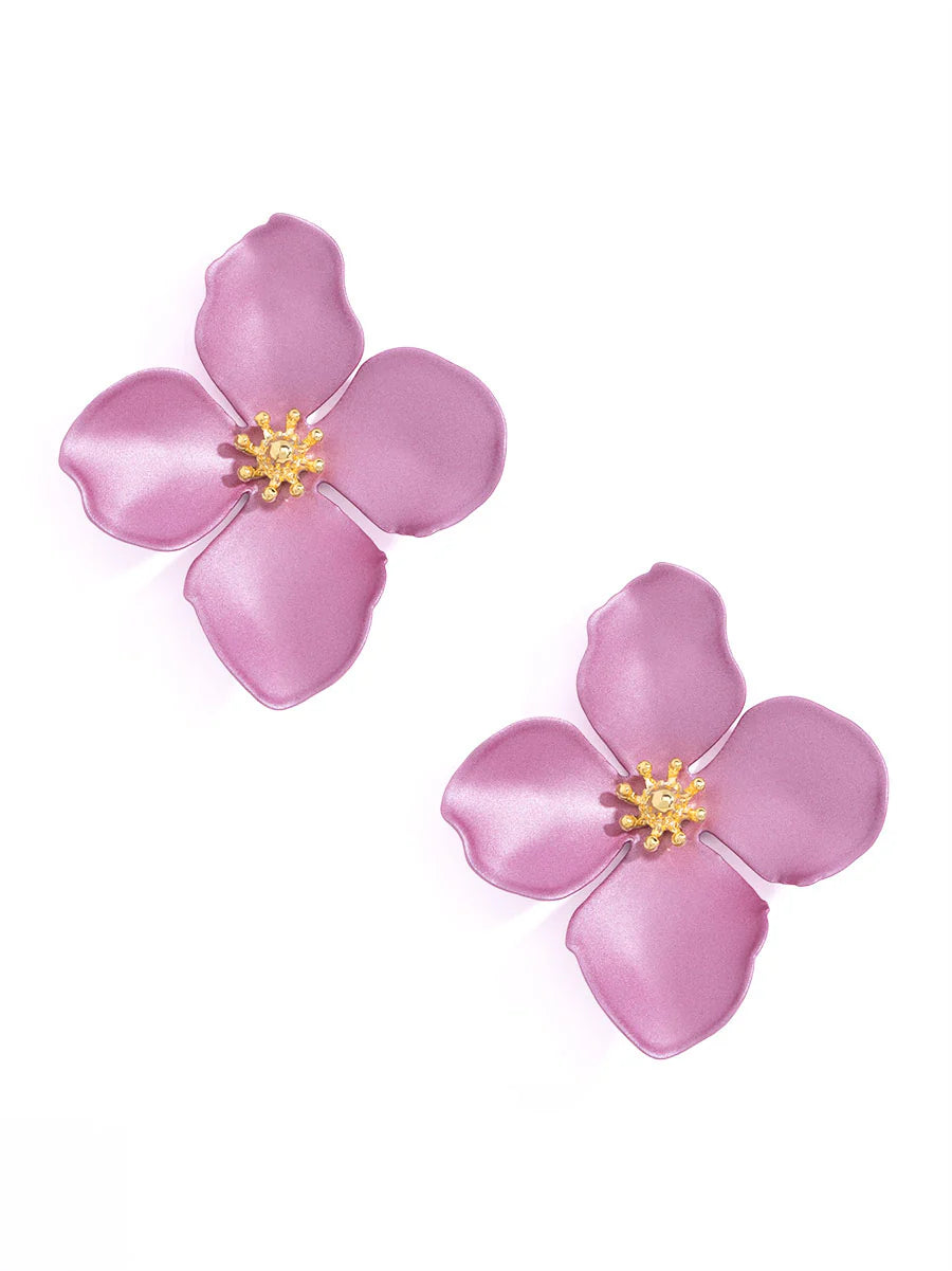 Hand-painted oversized metallic flower earrings with 18k gold-plated accents.