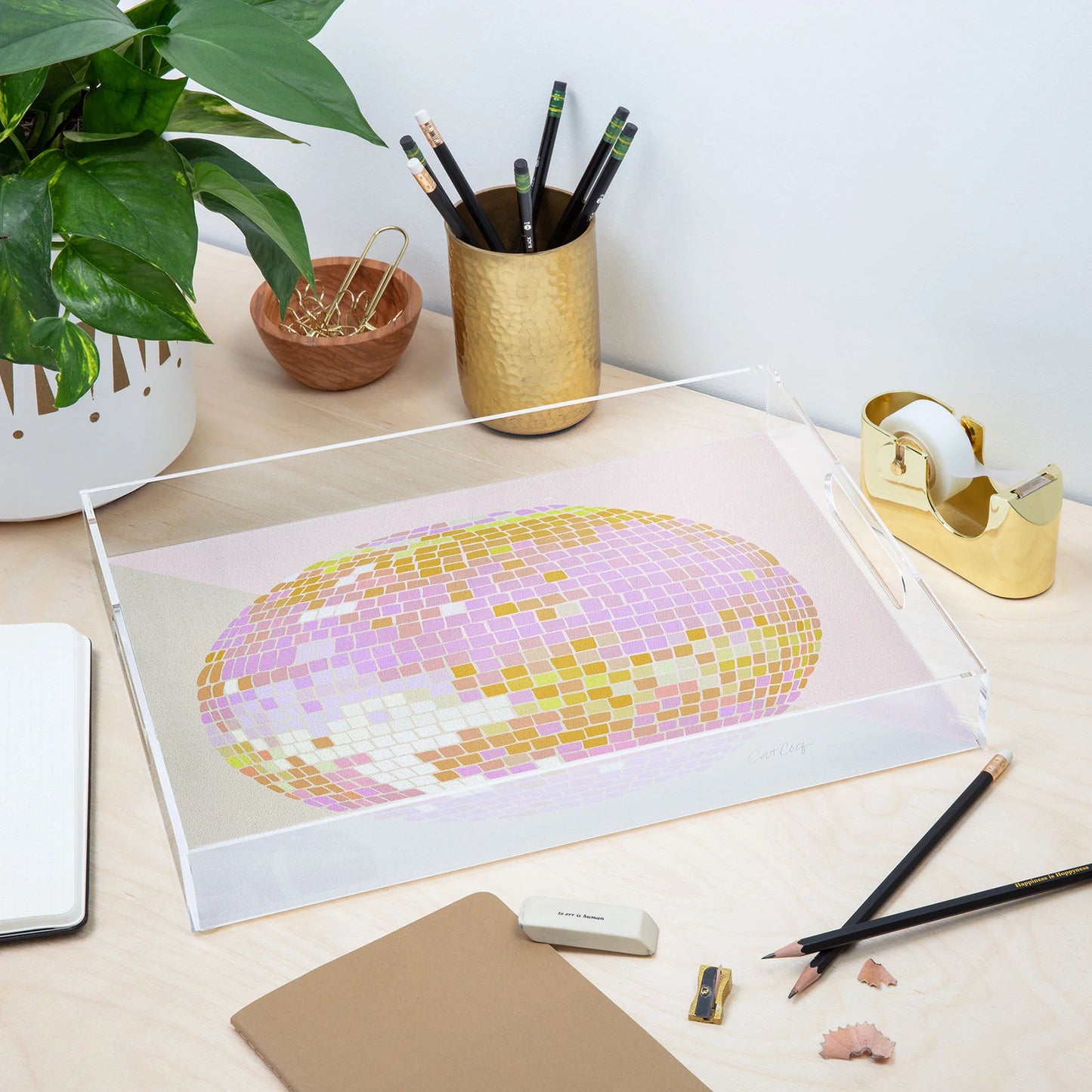 Medium Acrylic Tray: Peach Disco Ball