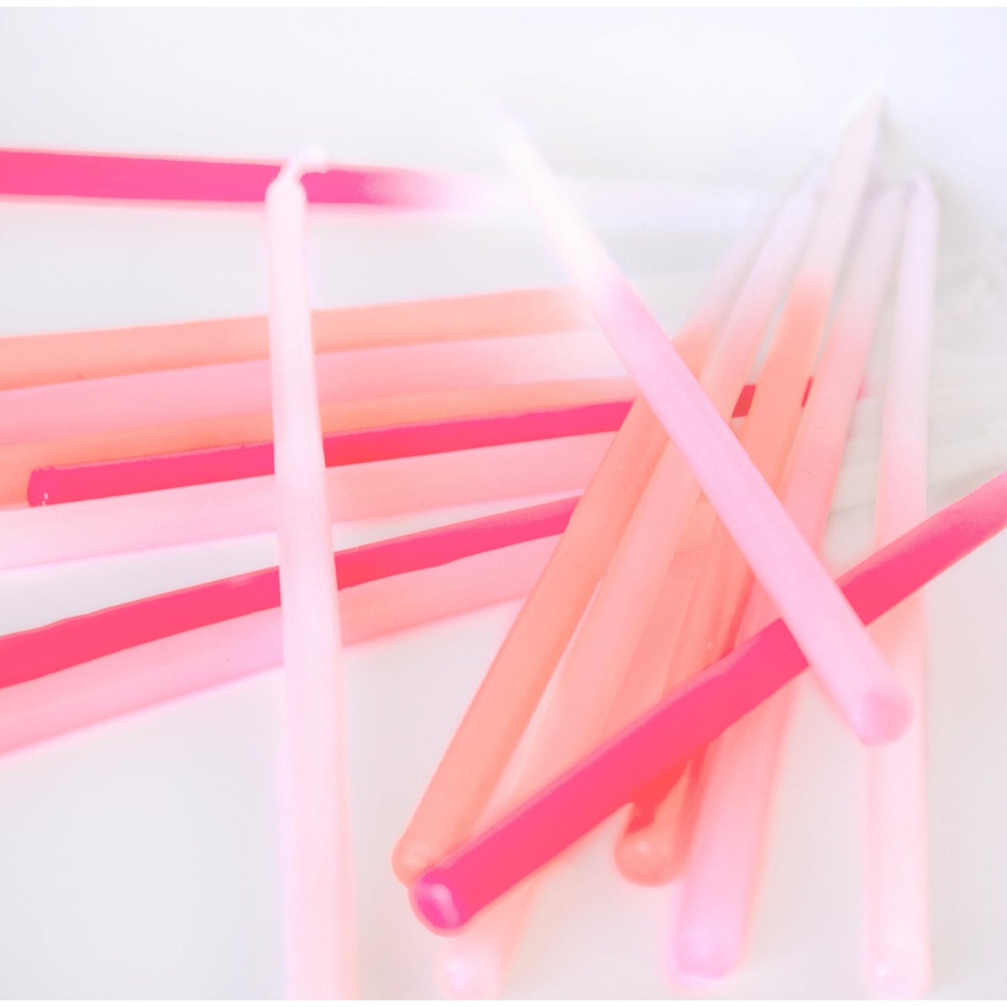 Make a party cake, or cupcakes, look perfect with these pretty pink candles. Each pack contains sixteen beautiful candles dipped in four different shades of pink. Perfect for a birthday, anniversary or baby shower.
