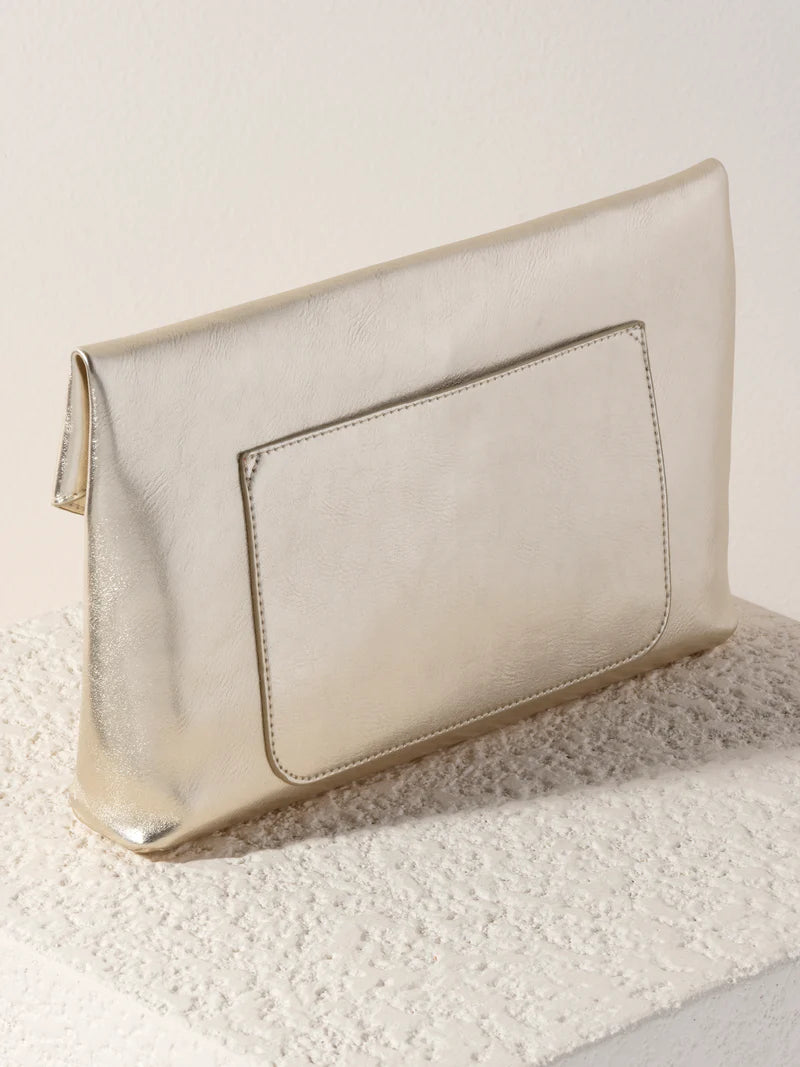 Shine bright and make a bold statement with Shiraleah’s Maddie Envelope Clutch. This chic and stylish oversized clutch is made from trendy metallic PU and adds a pop of glamorous golden shimmer to any outfit. Shaped like an envelope with an elegant, triangular folding closure, this large handbag is perfect for fitting your phone, wallet, and other day or nighttime essentials. Pair with the matching Maddie Card Case, or other items from Shiraleah to complete your look!