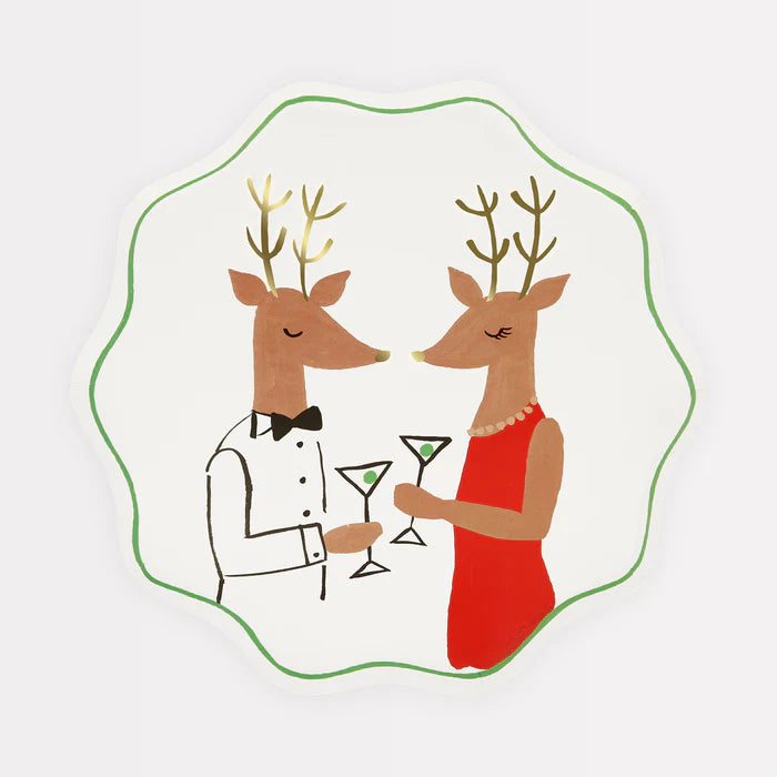 If you're looking for fun festive tableware, then you'll adore this smart reindeer couple out on the town! The design, and size, makes these the most perfect paper cocktail plates, or they can add a delightful touch to any Christmas meal.