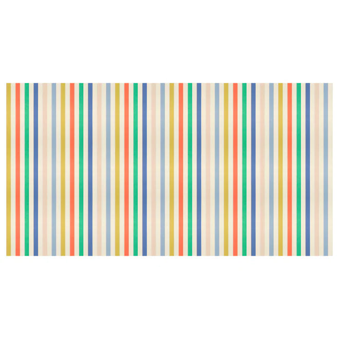 Stripes make a statement and have timeless appeal! Elevate your party table instantly with this colorful stripe tablecloth. The rainbow of colors are perfect for any special occasion, and will complement your party color scheme.