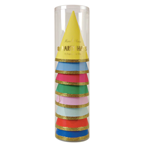 What better way to celebrate another excellent year than presenting your guests with these fabulously bright and sparkly party hats to wear! Each one comes in an individual color, finished with a band of gorgeous glitter.