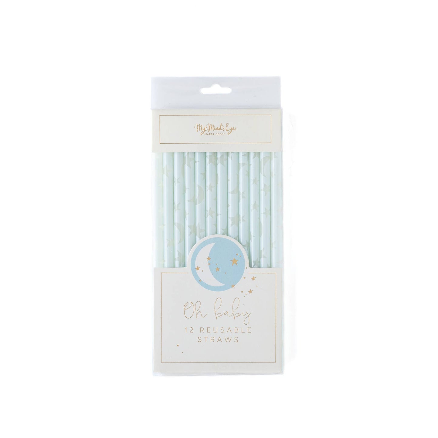 Add the an extra special touch to your party drinks with these blue reusable straws! The soft blue background and sweet moon and star pattern are an easy way to put a thoughtful finishing touch that the mom to be will love!