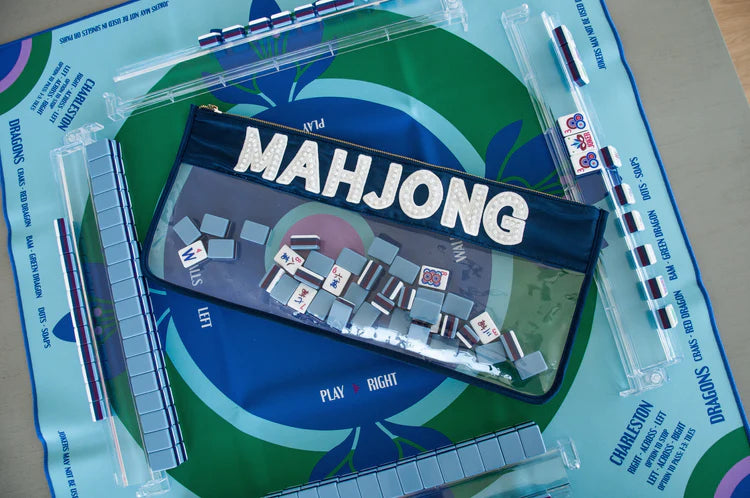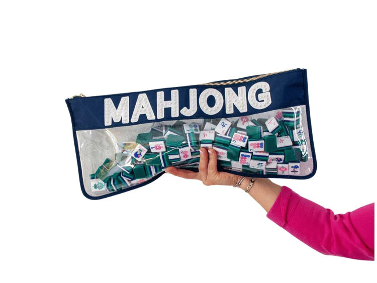 Well, bless your heart, darlin'! If you're lookin' for a little Southern charm to add to your mahjong game night, this Navy Vinyl bag with a zipper and MAHJONG printed in pearls is just the thing you need. With its convenient zipper closure and clear bottom section, this bag is as practical as it is fashionable. Show off your coveted tiles to your envious opponents with ease.