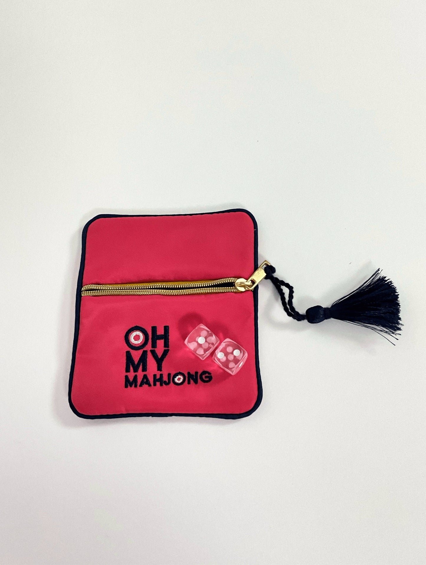 Enhance your Mahjong nights with our Mahjong Coin and Dice Bag in a charming Strawberry Pink hue complemented by Navy Piping and a Navy Tassel. This versatile bag not only adds a dash of style to your gaming ensemble but also serves as a convenient storage solution for your dice and coins.
