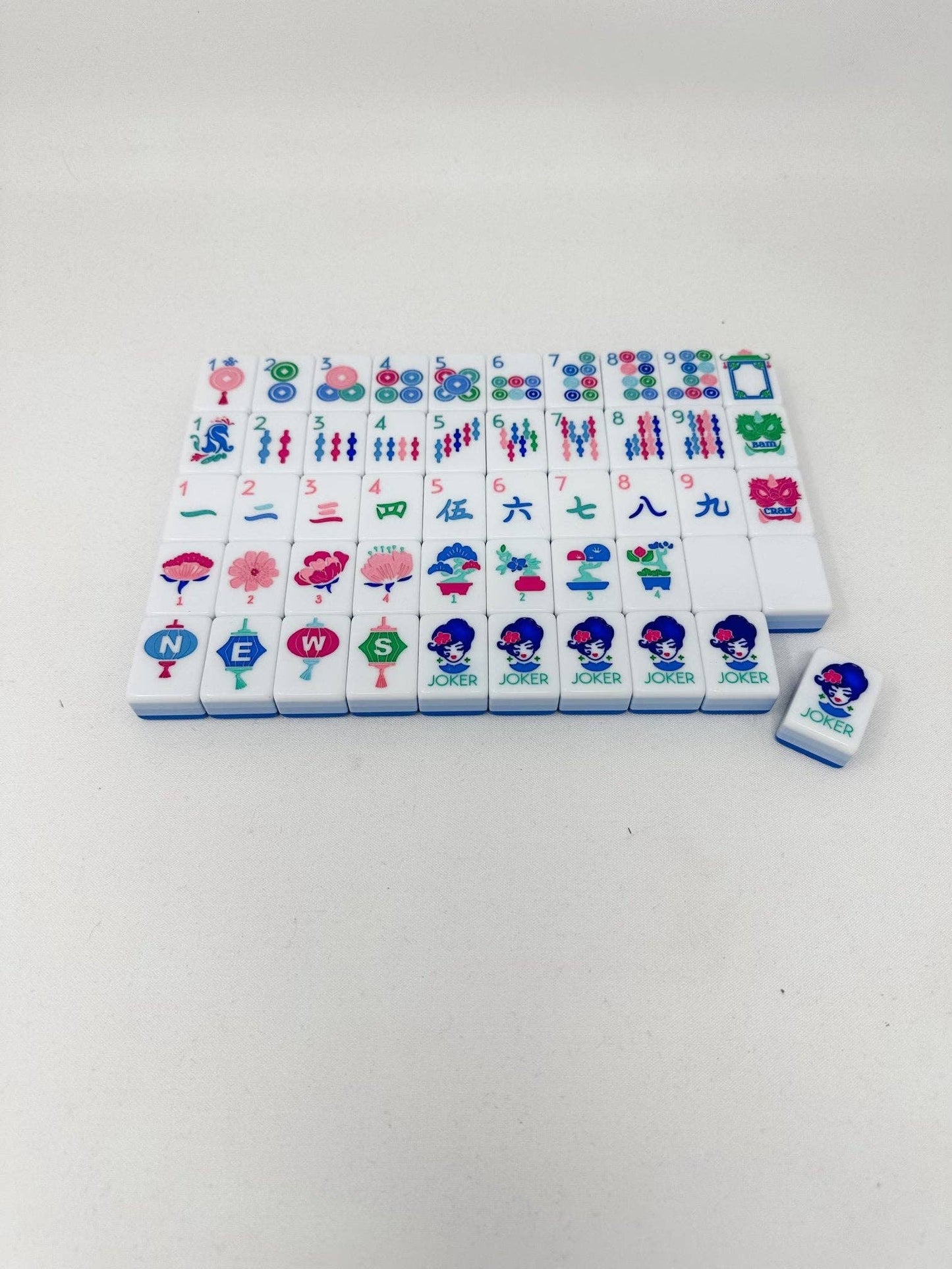 Featuring stripes in blue ombre, each tile boasts unique images that add a touch of elegance to your game. But what truly sets this set apart is our favorite character, the Joker, Lola.