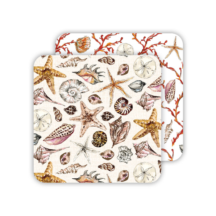 Paper Coasters: Handpainted Coastal Seashell Pattern/Coral Trellis