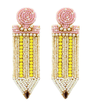 Show your appreciation for your favorite teacher with our gorgeous Pastel Seed Bead Pencil Earrings in Yellow. These earrings feature a precious pencil-shaped design that are sure to catch the eye. A perfect gift to show your gratitude and add a touch of style to any outfit.