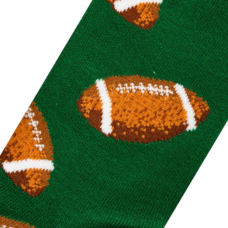 These new Pig Skin crew socks for kids are sure to be a major touchdown on the playground. These green socks feature graphic knitted images of footballs all over. These sports socks are perfect for athletic or fashion wear.