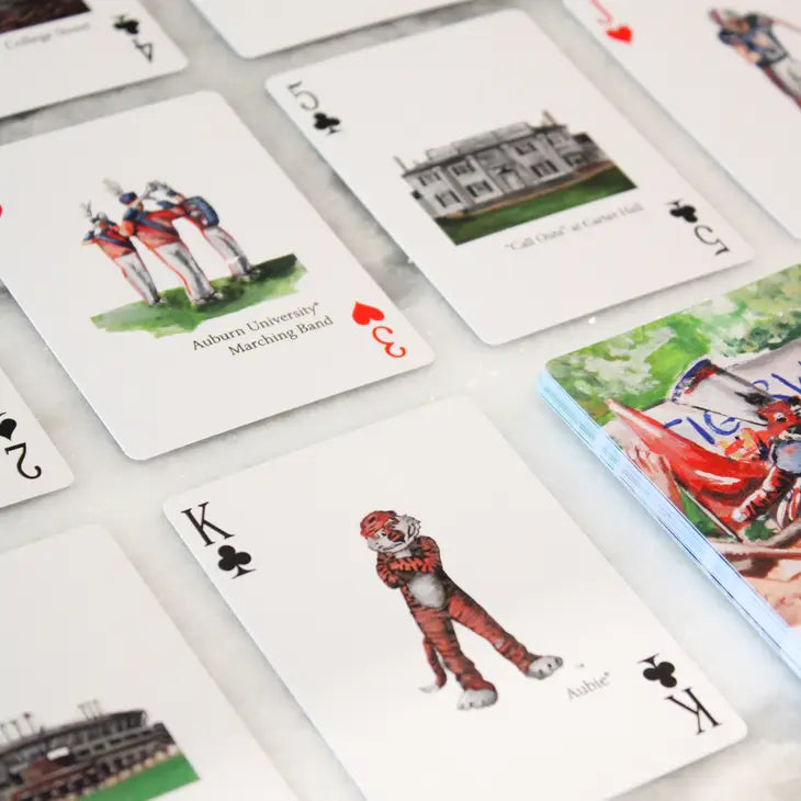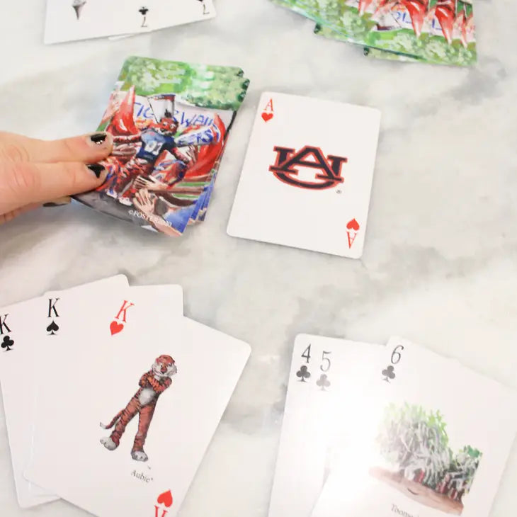 Play your favorite games and foster your Auburn memories with these fun playing cards. The Auburn Playing Cards feature 16 paintings of icons and traditions . These collegiate playing cards bring your school’s traditions and memories into the palm of your hand.