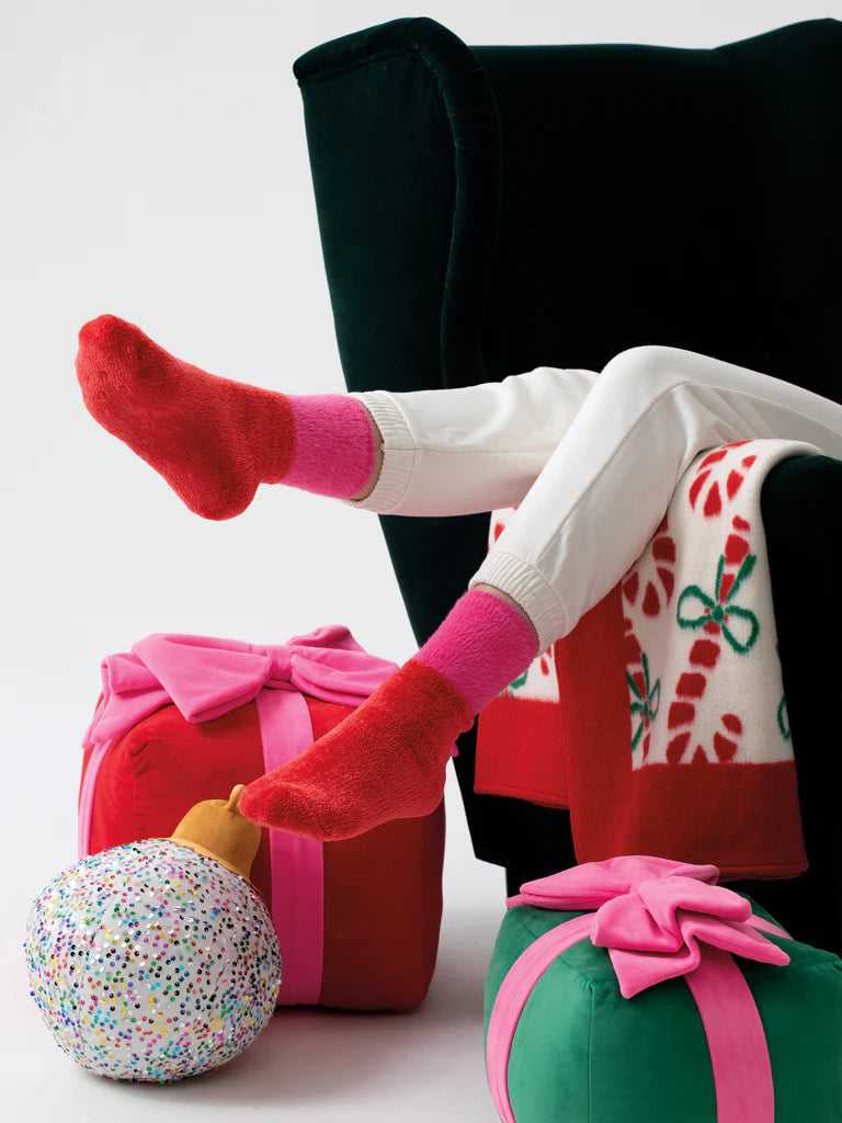 Say hello to your favorite new pair of socks for the holiday season and everyday - Shiraleah’s Amarie Socks. These velvety-soft color-block calf socks are vibrantly colorful and perfect for staying cozy during holiday celebrations. The feet of the socks are a bright red color with a vibrant pink contrasting band on top. With its durable rubber grip bottom, you can wear them throughout the house and beyond. Pair with other items from Shiraleah’s Merry Everything Collection to complete your look!