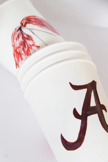 These cups embrace the spirit of the University of Alabama. Elevate your party with a unique shatterproof cup that displays original hand-painted designs. Celebrate the tradition and spirit of Alabama with FOSTER cups.