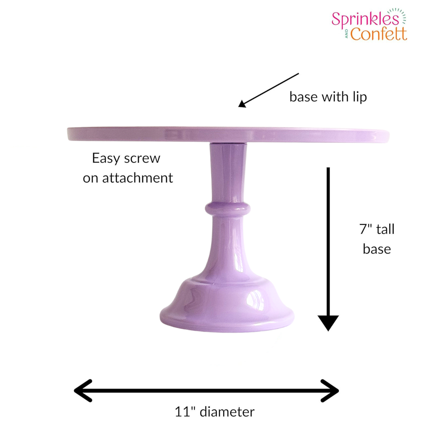 Enjoy this perfect sized classic bright light purple melamine cake stand for your next party. This cake stand is sturdy and elegant, adding a touch of fun color to your next party without the worry of a glass cake stand!